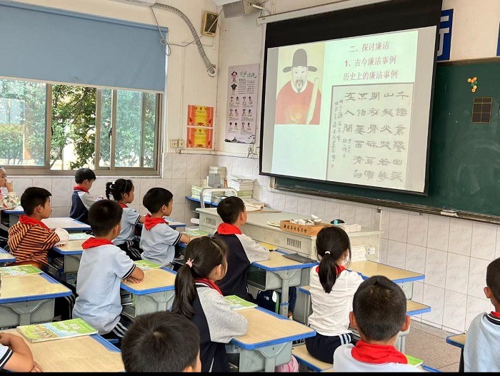 为营造学廉、敬廉、思廉、保廉的良好氛围,帮助学生树立廉洁意识和正确的道德观,做一个廉洁、正直、向善的人。2023年10月下旬,桃源小学开展了以“清风拂我心 廉洁伴我行”为主题的廉洁教育主题班会活动。