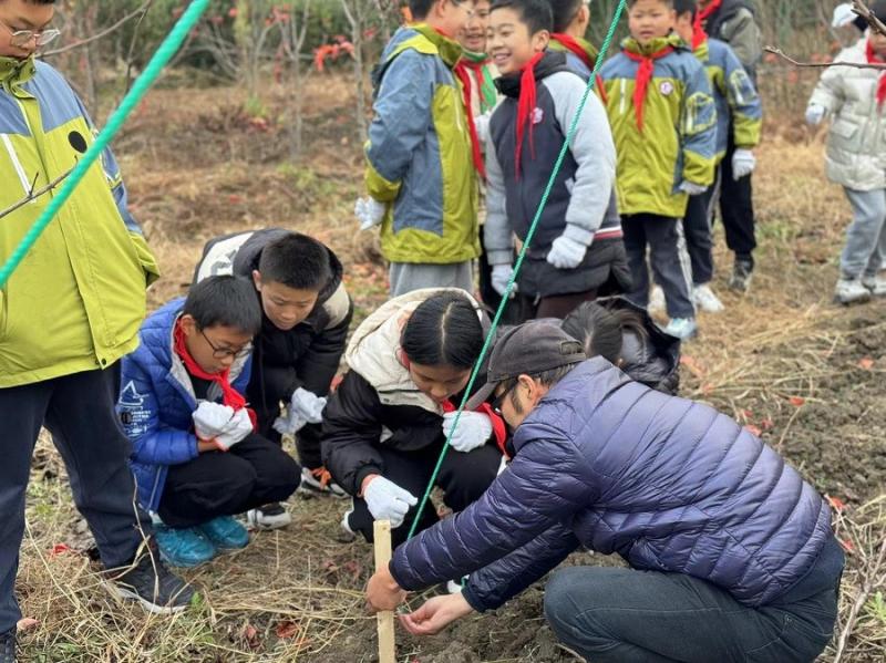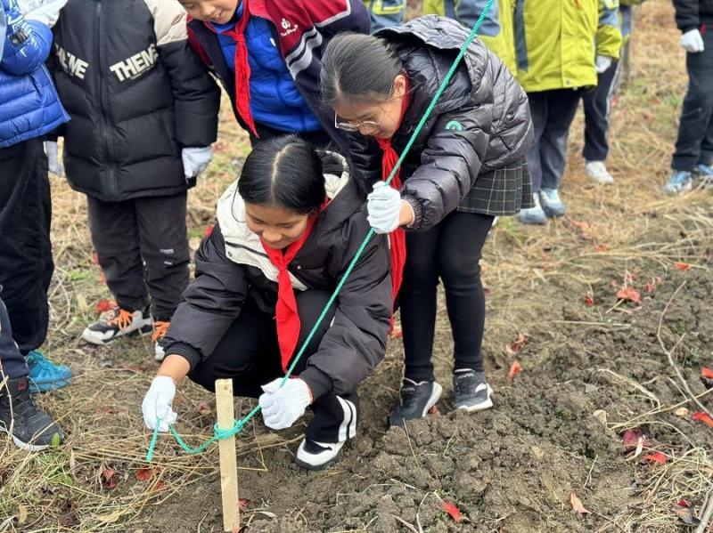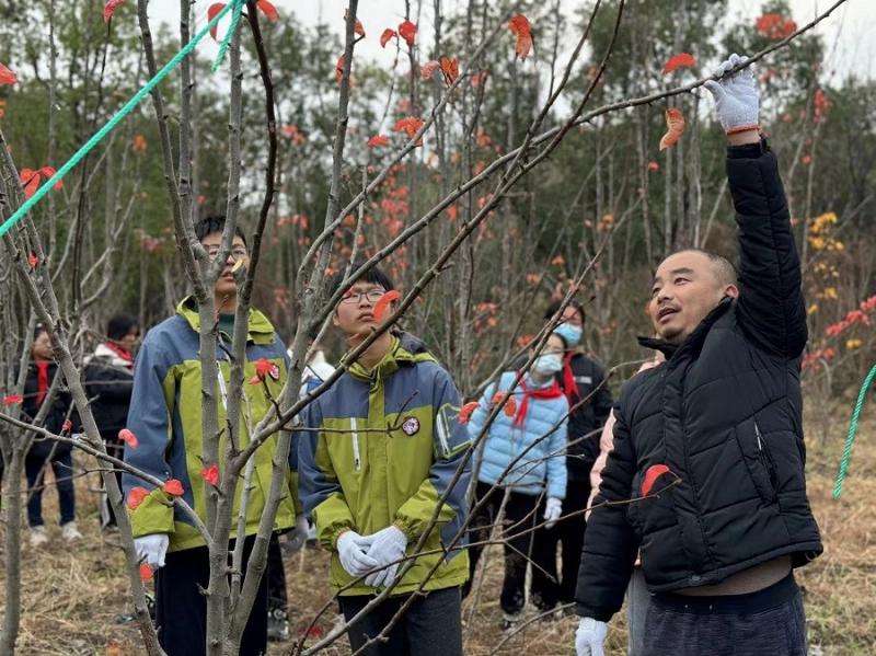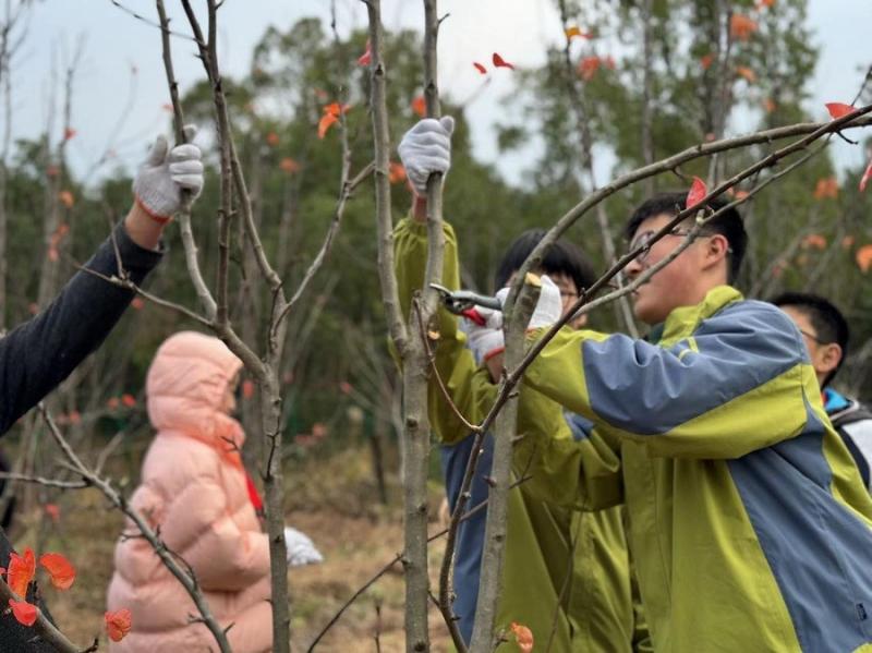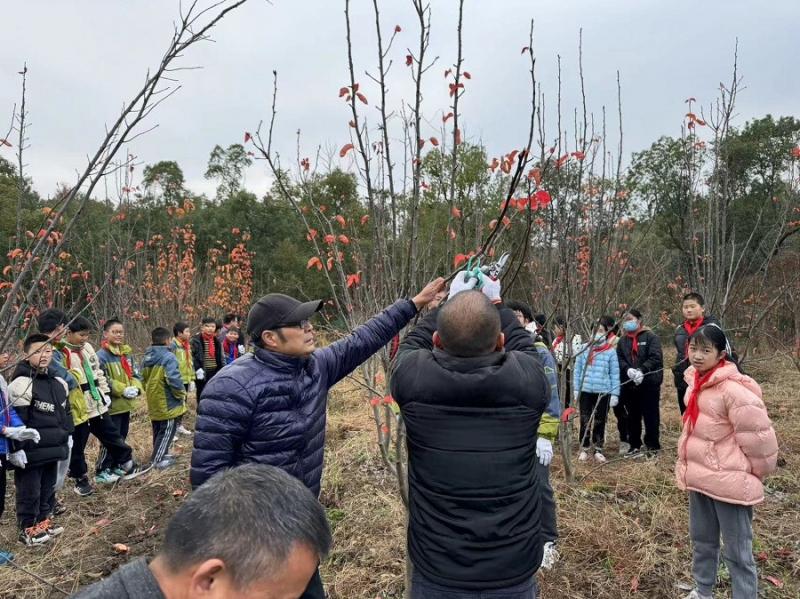 12月12日,桃源小学五六年级的同学来到劳动基地进行剪枝活动。